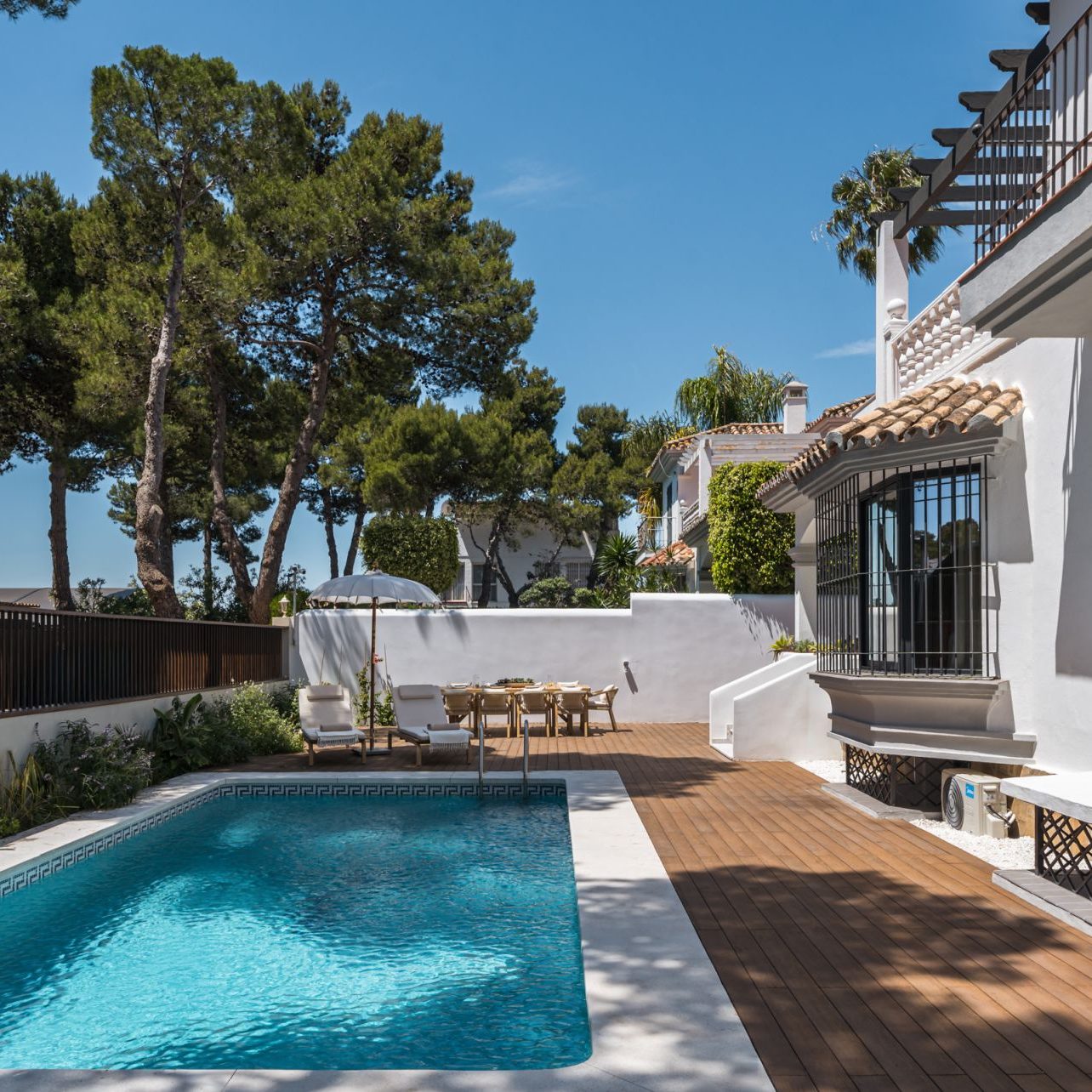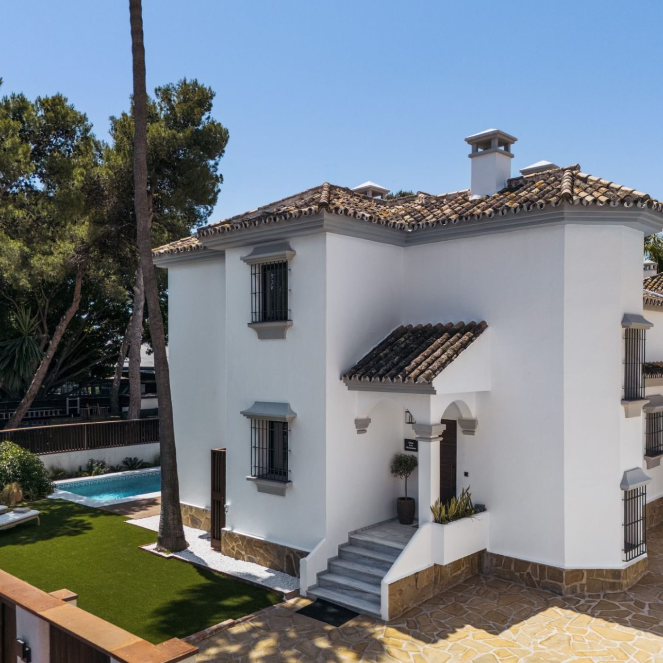 Casa Los Momentos is a refined 6-bedroom villa located in the prestigious Altos del Rodeo enclave of Nueva Andalucía, just moments from the heart of Puerto Banús and Marbella’s premier amenities. Blending timeless Mediterranean architecture with modern design, this three-level residence spans 315 square meters of elegant living space. Thoughtfully renovated, the villa features bespoke interiors, a private sauna, and seamless indoor-outdoor living, with generous terraces, a private pool, and a rooftop lounge area—all designed for both relaxation and sophisticated entertaining.