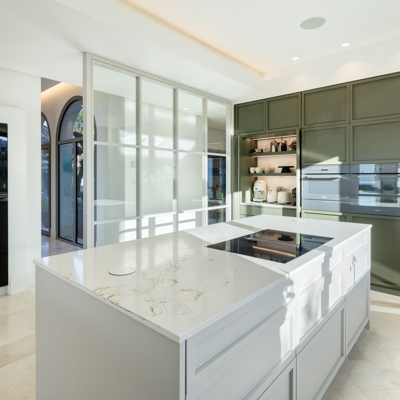 Inside, the villa reveals a carefully planned layout that accommodates seven spacious bedrooms, each with its own en-suite bathroom, allowing every family member or guest to enjoy a private retreat. The interiors are defined by a thoughtful interplay of light and space, enhanced by polished marble floors, warm wooden details, and contemporary furnishings that complement the home’s architectural vision.