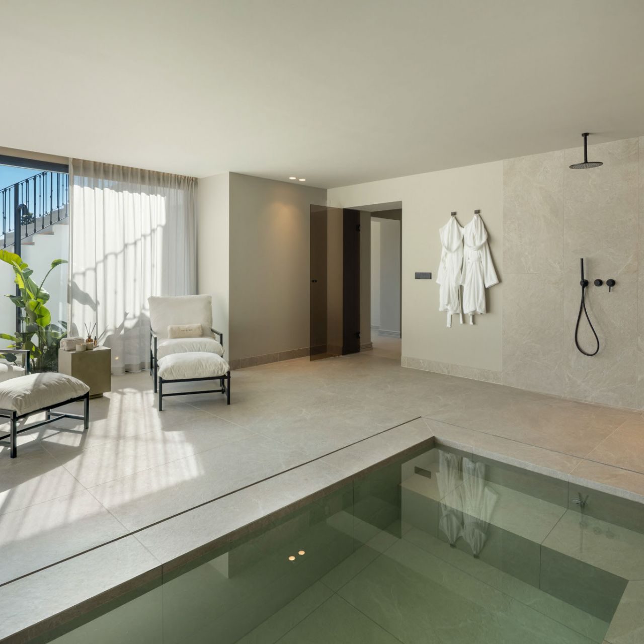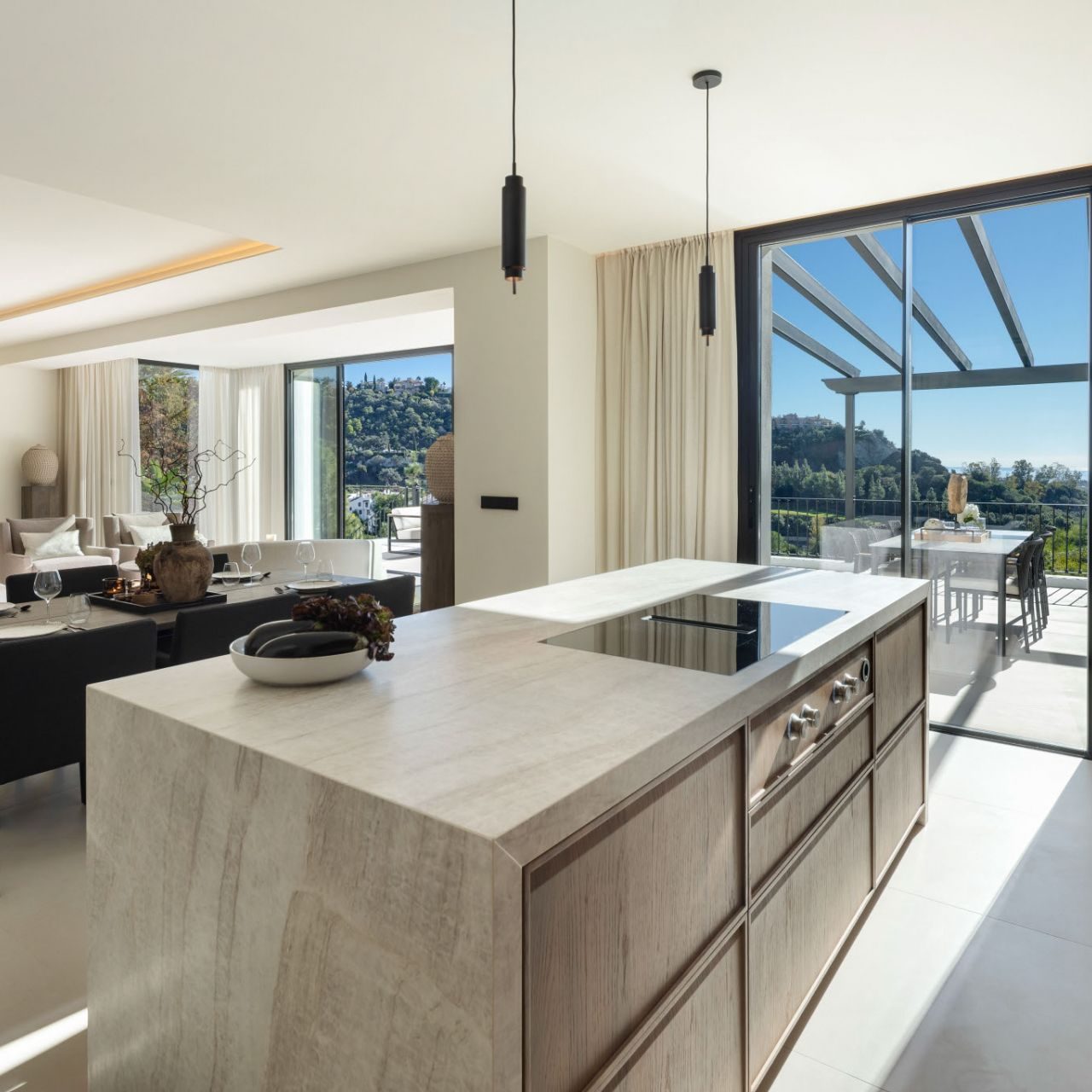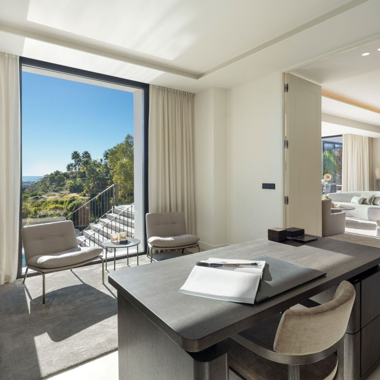 From the moment you enter, panoramic views and natural light define the experience. Floor-to-ceiling windows connect elegant open-plan interiors to expansive terraces, a saltwater overflow pool and a stylish cabana with outdoor kitchen, ideal for entertaining or relaxing year-round. The Nordic-inspired kitchen with top-tier Gaggenau appliances, a discreet preparation kitchen, spacious en suite bedrooms, and a standout master suite with cinematic views all contribute to the villa’s sense of understated luxury. Completing the lifestyle offering are exceptional amenities including a private spa, indoor plunge pool, sauna, wine bodega, poker room with bar and a fully equipped sea-view gym.