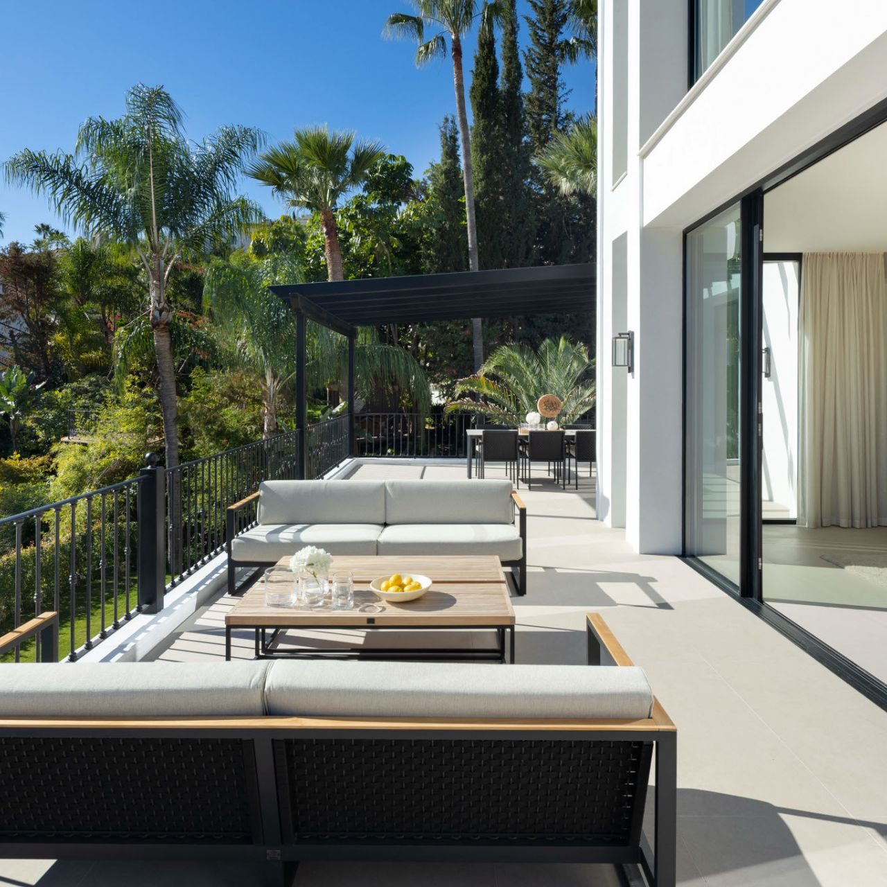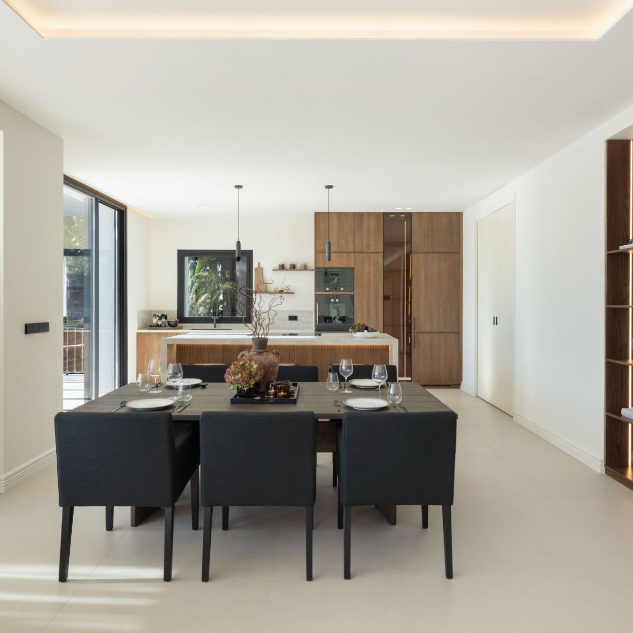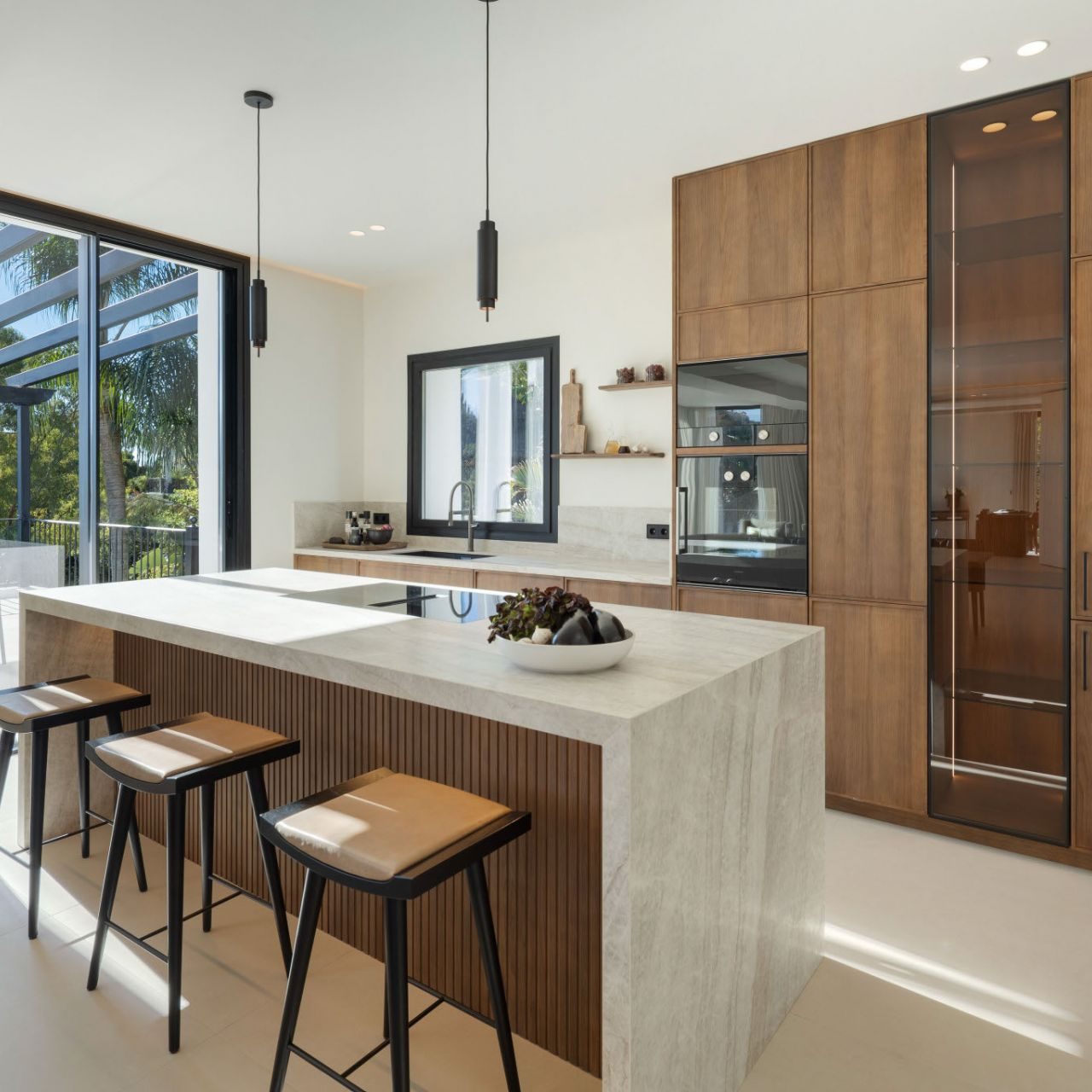 From the moment you enter, panoramic views and natural light define the experience. Floor-to-ceiling windows connect elegant open-plan interiors to expansive terraces, a saltwater overflow pool and a stylish cabana with outdoor kitchen, ideal for entertaining or relaxing year-round. The Nordic-inspired kitchen with top-tier Gaggenau appliances, a discreet preparation kitchen, spacious en suite bedrooms, and a standout master suite with cinematic views all contribute to the villa’s sense of understated luxury. Completing the lifestyle offering are exceptional amenities including a private spa, indoor plunge pool, sauna, wine bodega, poker room with bar and a fully equipped sea-view gym.