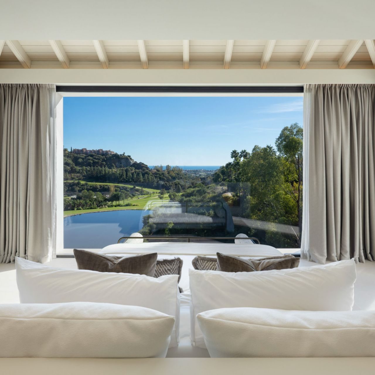 Villa Eros is a rare turnkey masterpiece set in a prime frontline position overlooking the lake on the prestigious Los Arqueros Golf Course, designed by Severiano Ballesteros. Fully renovated to exceptional standards, this five-bedroom, six-bathroom villa offers a breathtaking blend of sea, lake, mountain and golf views within a secure 24-hour gated community. Designed for contemporary luxury living, the home balances refined aesthetics with effortless comfort, showcasing bespoke craftsmanship, premium materials and an intelligent layout that elevates everyday living.